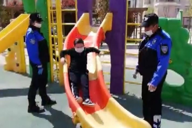 Gaziantep'te sokağa çıkma kısıtlaması nedeniyle evden çıkamadığı için sıkılan 11 yaşındaki down sendromlu Mehmet Sadullah Dutçu'nun imdadına polisler yetişti. Polisler çocuğu hem parka götürdü hem de ekip arabasıyla gezdirdi.
