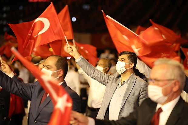 “Geçmişten ilmek ilmek örülen bu ihanet şebekesinin yaptıkları, 15 Temmuz’da başlarına çöktü. Sayın Cumhurbaşkanımızın kararlı duruşu, milletimizi meydanlara davet etmesiyle necip milletimizin meydanlara inerek ezan, bayrak, devlet için yapılması gerekeni yapan milletimizin anlından öpmek lazım. O gece, burada bulunanlarla beraberdik. Bu meydanda yaklaşık 300 bin kişi vardı. Bu meydanda alevisi-sünnisi, Türkü-Kürdü, yaşlısı-genci, kadını-erkeği hiç ayrım olmadan yerli ve milli olanlar buradaydı. Bu topraklar için kanlarını seve seve veren ecdadımıza yakışır vaziyette 15 Temmuz’da milletimiz gereğini yaptı. Bize düşen bundan sonraki süreçte gençlerimize 15 Temmuz’u unutturmamak. Yaşananları iyi incelemek lazım. Düşman durmadı, bundan sonra da durmayacak. Biz; çalışmaya, üretmeye devam edeceğiz. Ecdadımız nasıl ki dünyaya insanlık örneği gösterdiyse son dönemde mevcut idaremizin tüm dünyaya göstermiş olduğu insanlık dersinin yanında pandemi sürecinde yaşlananları gözümüzün önüne getirelim. Dünyanın 130 ülkesine yardım götüren, elindekini komşuları, dostlarıyla paylaşan bir milletiz. Bu necip millet var olduğu müddetçe, Allah’ın izniyle bu kutsal topraklar üzerinde emelleri olanlar, emellerine ulaşamayacaklar. Bize düşen; birlik-beraberlik içerisinde birbirimize sımsıkı sarılıp, daha çok çalışıp, daha çok üretmektir. 15 Temmuz’da maalesef şehitlerimiz, gazilerimiz oldu. Rabbim, şehitlerimizin makamlarını ali eylesin. Rabbim, gazilerimize sağlıklı uzun ömür versin. Allah, birliğimizi-beraberliğimizi daim eylesin.”