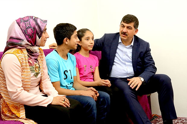Şehitkamil Belediye Başkanı Rıdvan Fadıloğlu, önceki gün yetim çocuklarla bir araya gelerek iftar açtığı programda kendisiyle ile sohbet eden 6. sınıf öğrencisi Esmanur Polat, evinde ağırlama davetini kırmadı. Fadıloğlu, Esmanur’un daveti üzerine Polat ailesini evinde ziyaret etti. Eşini 10 yıl önce kalp krizi sonucu kaybeden 34 yaşındaki anne Asiye Polat’tan çocuklarıyla ilgili bilgi alan Fadıloğlu, her zaman ve her konuda aileye destek olmaya hazır olduğunu ifade etti.