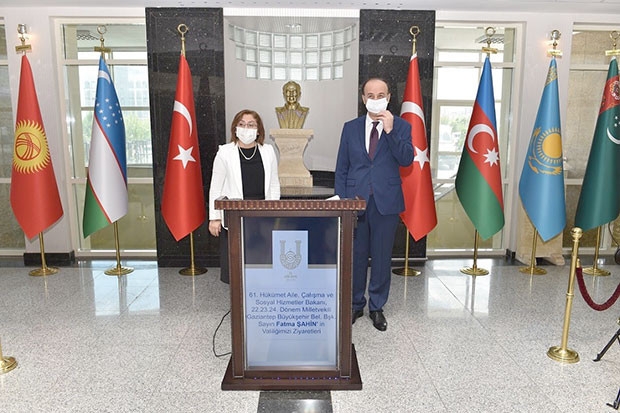 GAP Bölge Kalkınma İdaresi Başkanlığı ile Gaziantep İl Kültür ve Turizm Müdürlüğü ve Gaziantep Büyükşehir Belediyesi arasında Tilmen Höyük ve Dülükkaya Mezarlarının çevre düzenlemesi projesi protokolünü imzalamak ve bazı temaslarda bulunmak amacıyla Şanlıurfa’ya gelen heyet, Şanlıurfa Valiliğini ziyaret etti. Gaziantep Büyükşehir Belediye Başkanı Fatma Şahin, Türkiye Belediyeler Birliği Genel Sekreteri Birol Ekici ve beraberindeki heyet, Vali Abdullah Erin tarafından karşılandı. Karşılamanın ardından Valilik Şeref Defterini imzalayan Şahin, beraberindekilerle Valilik makamında ağırlandı. Vali Erin ile bir süre sohbet eden Şahin ve beraberindekiler, korona virüs pandemi süreci ve ekonomi konularında görüş alışverişinde bulundu. Ziyaret anısına Vali Erin’in yağlı boya Şanlıurfa tablosu hediye ettiği Şahin ve beraberindekiler, ziyaretlerine devam etmek üzere Valilikten ayrıldı.