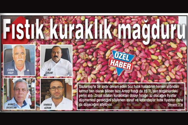 Antep fıstığının kuraklığa dayanaklı bir ürün olmasına rağmen bekledikleri rekolteyi alamayacaklarını söyleyen Şehitkamil Ziraat Odası Yönetim Kurulu Başkanı Cuma Yiğit’de, şunları söyledi. “Bu yıl fıstıkta var yılı ancak fıstıkta beklenen rekolte kuraklıktan dolayı olmadı. Ağaçlarda fıstık var görülüyor ancak fıstığın içi boş. Çiftçilerimiz özellikle bu yıl fıstığına sahip çıksın. Beklenen fıstık ağaçlarda maalesef yok. Kışın yağış oldu ama ağaçlar sıcaktan dolayı kurudu diyebiliriz. Beklenen fıstık rekoltesi 20 bin ton olduğu söyleniyor ama kesinlikle bu yıl 20 Bin ton fıstık çıkmaz. Özellikle kuraklıktan dolayı ürünün az olmasıyla çiftçilerinde mağdur olmaması için fıstık fiyatları boz 8 TL’nin altına düşmemeli. Taze ben fıstık 10 TL’nin altına düşmemeli. Ağaç altı dediğimiz kabuklu kuru ben fıstık ise 20 TL’nin altında olmamalı” dedi.