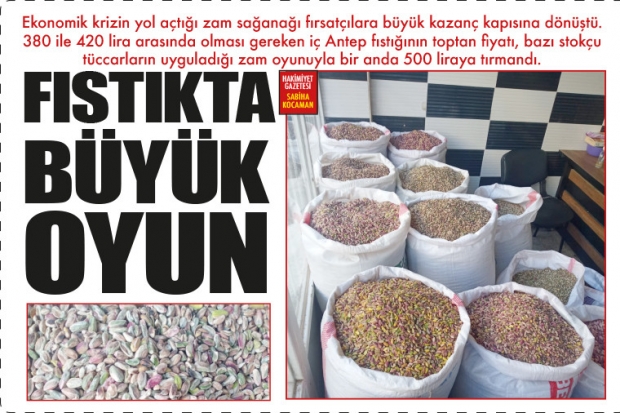 Ekonomik krizin yol açtığı zam sağanağı fırsatçılara büyük kazanç kapısına dönüştü. 380 ile 420 lira arasında olması gereken iç Antep fıstığının toptan fiyatı, bazı stokçu tüccarların uyguladığı zam oyunuyla bir anda 500 liraya tırmandı.