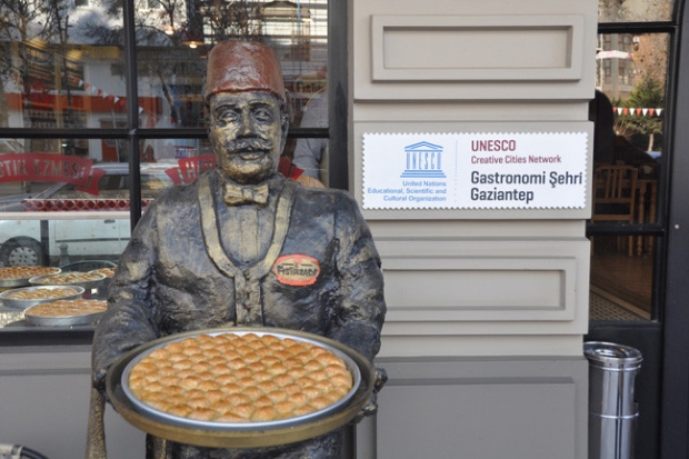 Gaziantep’in gastronomi kategorisinde UNESCO’nun Yaratıcı Şehirler Ağına dahil edilmesinin yankıları sürerken, sektör temsilcileri de sürece destek vermek için harekete geçti. Türkiye’de 12 satış noktasına ulaşan Fıstıkzade baklava, tüm şubelerine ‘Gastronomi Şehri Gaziantep’ ibareli tabelalar asarak baklava severleri bilgilendirmeye başladı.