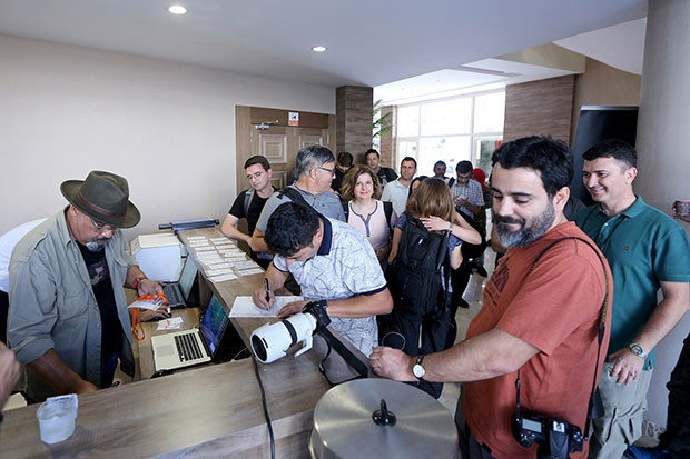 Ülkenin dört bir yanından gelen profesyonel fotoğrafçılar, Çetin Emeç Salonu girişinde sabahın erken saatinde toplandı, kayıt için sıraya girdi.