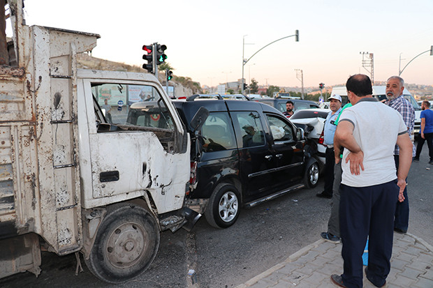 Gaziantep'te freni boşalan kamyon kırmızı ışıkta bekleyen araçlara çarptı. Aralarında polis aracının da karıştığı zincirleme kazada, birbirine giren aracı polis de ayıramadı.