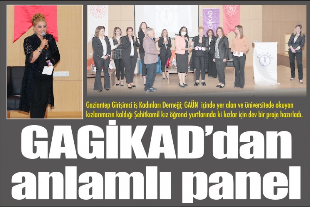 Gaziantep Girişimci iş Kadınları Derneği, Kız Öğrenci Yurtları Eğitim Sorumlusu Pelin Nacaroğlu ve Yurt Müdürü Gül Babacan’ın talepleri üzerine "GAGİKAD KADIN HAKLARI PANELİ’ hazırlandı. Panel kız öğrenciler tarafından çok rağbet görürken, salonda oturacak yer kalmaması katılan bürokrasi tarafından da takdir gördü. Panel saygı duruşu ve istiklal marşından sonra GAGİKAD Yönetim Kurulu Başkanı Dr. Beril Özlem Leylek’in konuşması ile açıldı.