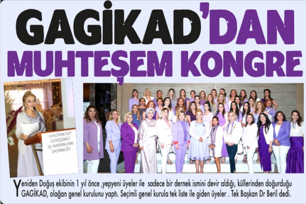 Faaliyet raporunu okuyan Başkan Beril ise salın tarından defalarca alkışlandı. Başkan Beril “ Bu bir içsel dönüşüm hikayesidir. Bu bir derneksel devrimdir. Bu bir yol göstericiliktir. Zaman zaman haftada 2 etkinlik birden gerçekleştirdik ama bir yıl boyunca tam 50 etkinlik yapmışız. Bunların bir çoğu dev etkinliklerdi yüreğimizi acıtanlar ve mutlulukla imza attıklarımız oldu. Hepsi dev bütçeler ile yapıldı. GAGİKAD gücünü iş kadınlarından alır, tam bağımsız bir dernektir, gerçek seçimler ile yönetim seçilir. Biz de ne meşrûtiyet ne mecburiyet ne de aristokrasi yoktur. Biz cumhuriyetiz “ sözleri genel kurula damgasını vurdu .