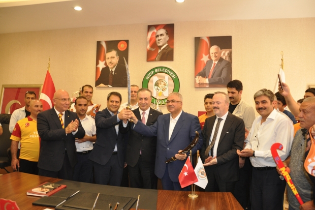 Galatasaray Kulübü Başkanı Mustafa Cengiz, Gaziantep'in Nizip ilçe girişinde Nizip Belediye Başkanı Hacı Fevzi Akdoğan, Galatasaray taraftarları ve Nizipspor yönetimi tarafından sarı ve kırmızı çiçek buketiyle karşılandı. Taraftarın hatıra fotoğrafı çektirdiği Cengiz, Nizip Belediye Başkanı Akdoğan ile birlikte Nizip Belediyesi'ne geçti. Burada AK Parti Gaziantep Milletvekili Ali Şahin ve Nizip Kaymakam Kemal Şahin ile ilçedeki spor faaliyetleri hakkında görüşen Cengiz, Nizip Belediye Başkanı Akdoğan'a Galatasaray forması, Akdoğan tarafından ise konuğuna sedef işlemeli kılıç hediye etti. Mustafa Cengiz, belediyede hokeyciler tarafından hediye edilen hokey raketi ve topunu da kabul ederek onlarla fotoğraf çektirdi.