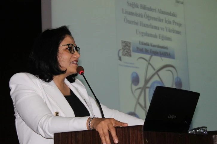 Fırat Üniversitesi Farmakoloji Bilim Dalı Öğretim Üyesi Prof. Dr. Engin Şahna ise, “Etkinliğimize hoş geldiniz. Gaziantep Üniversitesi Rektör Yardımcısı Sayın Prof. Dr. Ayşe Balat ve Gaziantep Üniversitesi Tıp Fakültesi Dekanı Sayın Prof. Dr. Şevki Hakan Eren bu etkinliğin Gaziantep’te düzenlenmesi hususunda bize çok büyük destek sağladılar ve kapılarını açtılar. Burada olduğumuz için çok mutluyuz. Amacımız bir fikirden yola çıkarak proje üretiminin nasıl gerçekleşeceği konusunda siz kursiyerlerimize bilgi birikimi sağlamaktır. Bu aşamada gerekli olan bütün konu başlıklarını sizlere anlatacağız. TÜBİTAK’ın ulusal ve uluslararası programlarını tanıtacağız. Her şey bir soru ile başlıyor. Fikriniz oluştuktan sonra araştırma sorusu ve hipotez geliştiriyorsunuz. Bu süreç arkasından proje önerisine dönüyor. Sağlam bir araştırma sorusu projenizin başlangıç anlamında en önemli sürecini oluşturuyor. Projeyi tamamen bir ikna etme metni olarak düşünmekteyiz. Konumuzun önemli, değerli olduğuna, yapılması gerektiğine, bunu yapacak en iyi ekibin de projedeki arkadaşlarımız olduğuna ikna etmeye çalışacaksınız. Bu süreci, bu eğitimde hep beraber konuşacağız. Eğitimde eleştirisel makale okumayı da anlatacağız. TÜBİTAK’ın proje alt kıvrımlarından da bahsedeceğiz. Etkin ve yetkin bir ekip olduğunuza panelistleri ikna etmeniz gerekecek. Bu eğitimde özgün değer, araştırma yöntemleri, metotlar, iş zaman çizelgesi, bütçe, yaygın etki bunların hepsini konuşacağız. Projenizin geçmesi büyük bir olay. Ancak projenin bir de yürütme süreci var. Projeyi nasıl yürüteceğiz, nasıl devam ettireceğiz bunları da konuşacağız. Sonuç raporu yazmayı da anlatacağız. Sonuç raporu sonrası kabul süreci var. Arkasından bunların yayın olması gerekiyor. Tüm bu konularla ilgili sizlere bir farkındalık oluşturmaya çalışacağız. Çok iyi bir ekip ile buradayız. Etkin bir eğitici kadromuz var. Bu eğitimin düzenlemesine katkı sağlayan herkese tek tek teşekkürlerimi sunuyor, verimli bir eğitim diliyorum” dedi.
