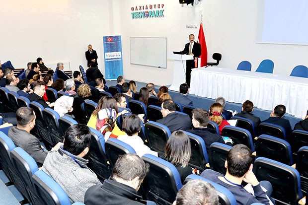 Gaziantep’in Türkiye’nin en fazla ihracat yapan 6. şehri olduğunu hatırlatarak, bununla iftihar ettiklerini belirten Prof. Dr. Gür, “Temel şey şu, katma değeri yüksek ürünler üretebilecek kapasiteyi artırmadığımız müddetçe bir süre sonra sadece insan kaynaklığının ucuzluğuyla bu işi götüremeyiz” dedi. Gaziantep gibi çok büyük 5. Organize Sanayisi olan bir şehirde 10+4 yani 10 Ar-Ge merkezi 4 tasarım merkezi bulunduğunu hatırlatan Prof. Dr. Gür, “Gaziantep gibi devasa bir yapıda bu yeterli mi? Asla. Sanayici arkadaşlarımızın da bu kültürü oturmaları gerekiyor. Bir üniversite Rektörü olarak şunu istiyorum; özellikle Avrupa Birliği Projeleri ki ortak kültürü aynı havuzda birleştirmek açısından veya TÜBİTAK projelerini yeni fon bulma açısından çok önemsiyorum” diye konuştu.