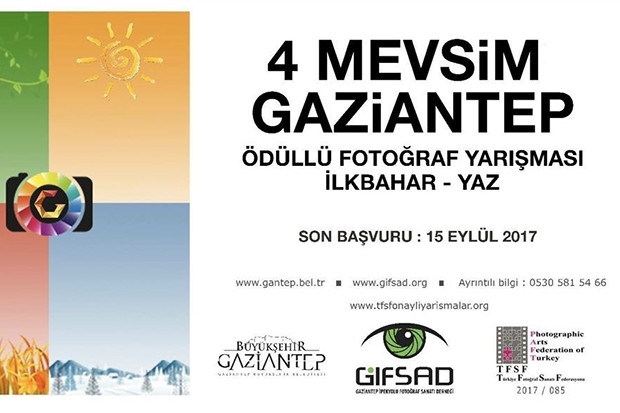 Gaziantep Büyükşehir Belediyesi tarafından bu yıl ilk kez "4 Mevsim Gaziantep İlkbahar-Yaz Ulusal Fotoğraf Yarışması" düzenlenecek. İlkbahar-Yaz bölümü için 25 Haziran 2017'de başlayan başvurular, 15 Eylül 2017'de sona erecek. Yarışma, Türkiye'de alanında kademeli yapılacak ilk yarışma niteliği de taşıyor.