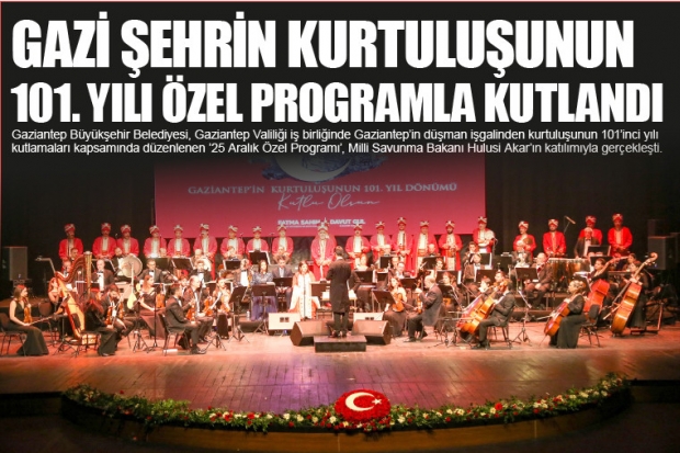 Kültür ve Turizm Bakanlığı Güzel Sanatlar Genel Müdürlüğü’nün Gaziantep Büyükşehir Belediyesi ve Gaziantep Üniversitesi iş birliğinde, Çukurova Devlet Senfoni Orkestrası Şefi Eray İnal'ın şefliğinde Gaziantep'in Kurtuluşunun 101. Yıl Dönümüne özel hazırlanan ‘Destan Yazan Şehir Gaziantep’ konseri ve eşsiz gösteriyle geceyi taçlandırdı.