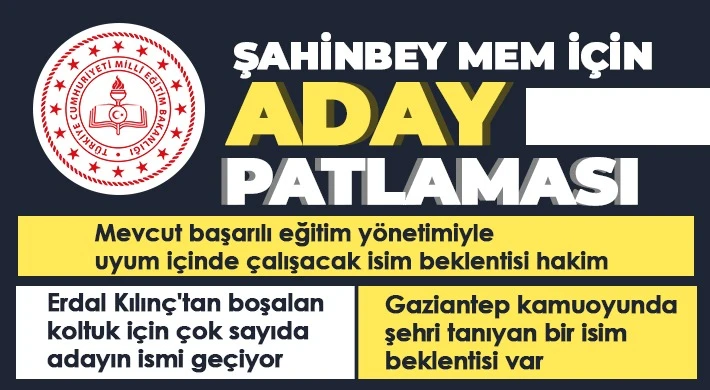 Gaziantep dışından bir isim atanmasın çağrısı Yeni Şahinbey İlçe Milli Eğitim Müdürlüğü için ismi geçen adaylarının pek çoğunun Gaziantep dışından isimler olduğu belirtilirken, Gaziantep kamuoyu ise kenti bilen bir ismin atanmasını istiyor. Yeni atanacak müdürün kent dışından biri olması halinde alışma sürecinin uzun süreceği ve bu durumun da iş ve işleyişte aksamalara yol açacağı belirtildi.