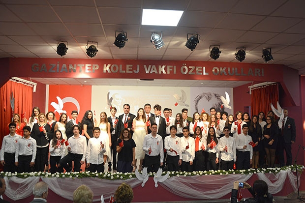 Gaziantep Kolej Vakfı Özel Okullarında Cumhuriyetin kuruluşunun 96.yıl dönümünde duygulu anlar yaşandı. Öğrenciler tarafından sahnelenen Cumhuriyet Oratoryosu ayakta alkışlanırken okul korusu tarafından seslendirilen Cumhuriyet ve Atatürk konulu şarkılara izleyiciler eşlik etti. GKV Mütevelli ve Yönetim Kurulu Başkanı Nüket Ersoy organizasyonu gerçekleştiren öğrenci ve öğretmenleri kutlayarak “Cumhuriyet sizlere emanet” mesajını verdi.