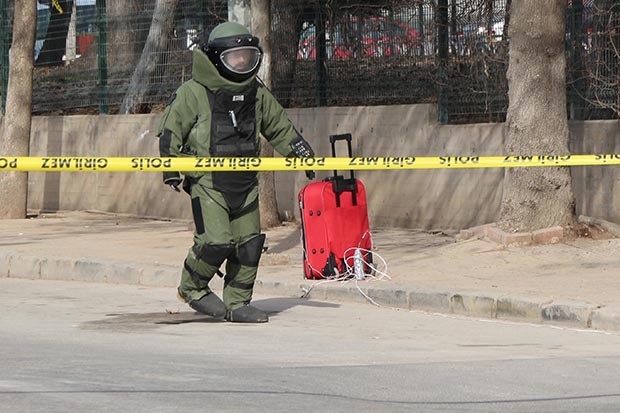 Karacaahmet Mahallesi'ndeki Şehirlerarası Otobüs Terminali önünden geçen yoldaki kaldırımında sahibi bilinmeyen valiz görenler, içerisinde bomba olabileceği şüphesiyle durumu polise bildirdi. İhbar üzerine gelen polisler, yolu araç ve yaya trafiğe kapatarak güvenlik önlemi aldı. Yolda park halindeki araçlar çekicilerle otoparka götürülürken, bölgeye bomba imha uzmanları çağrıldı. Bomba imha uzmanı, fünye yerleştirdiği valizi kontrollü şekilde patlattı. Gürültüyle patlatılan ve içerisinden kıyafet çıkan valiz, incelenmek üzere Emniyet Müdürlüğü'ne götürüldü.