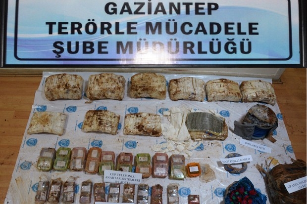 Gaziantep' te polis, Türkiye' de sansasyonel eylem hazırlığında olan DEAŞ' lı 4 teröristi 150 kilo patlayıcı ve çok sayıda mühimmatla gözaltına aldı.