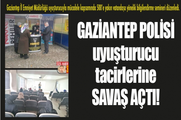 Gaziantep İl Emniyet Müdürlüğü'nün son yıllarda etkin bir şekilde sürdürdüğü mücadele hız kesmiyor. Narko-Timler şehir genelinde en küçük bir ihbarı bile anında değerlendiriyor. Uyuşturcuyla mücadele kapsamında narkotik polisi vatandaşları bilgilendirmeye yönelik seminerlere hız verdi. Gaziantep İl Emniyet Müdürlüğü Narkotik Şuçlarla Şube Müdürlüğü yetkililer "Uyuma Projesi" kapsamında vatandaşlara yönelik seminerler vermeye başladı. Düzenlenen son seminere 500'e yakın ailenin temsilcileri katıldı.
