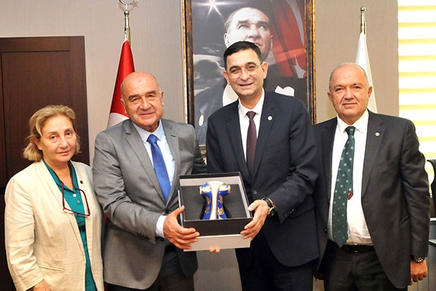 GSO Yönetim Kurulu Başkan Yardımcıları Cevdet Akınal, Ferhan Sağım, Yönetim Kurulu Üyeleri Perihan Çöçelli, Başar Küçükparmak, Mustafa Özmermer ile Genel Sekreter Kürşat Göncü’nün de hazır bulunduğu ziyaret sonunda karşılıklı hediye takdiminde bulunuldu.