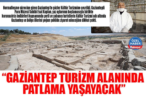 Normalleşme sürecine giren Gaziantep’te gözler Kültür Turizmine çevrildi. Gaziantepli Para Müzesi Sahibi Esat Kaplan, yaz aylarının başlamasıyla birlikte koronavirüs tedbirleri kapsamında yerli ve yabancı turistlerin Kültür Turizmi adı altında Gaziantep ve bölge illerini yoğun şekilde ziyaret edeceğine dikkat çekti.
