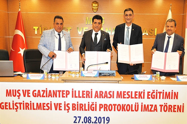 Gaziantep Sanayi Odası ve Muş Ticaret ve Sanayi Odası ile Muş ve Gaziantep İl Milli Eğitim Müdürlükleri Arasında Mesleki Eğitimin Geliştirilmesi ve İşbirliği Protokolü imzalandı.