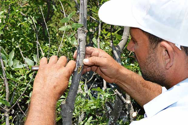 Acaroba, Cerityeniyapan ve İskenderli mahallelerinde yaşayan vatandaşları ekonomik yönden destekleyecek projede, aşılama işlemlerinin tamamlandığı menengiç ağaçlarından 4 yıl sonra Antep fıstığı ürününün elde edilmesi hedefleniyor.