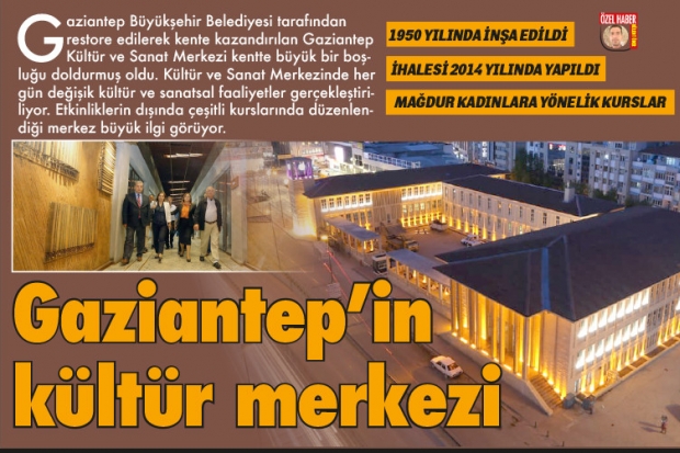 Gaziantep Büyükşehir Belediyesi tarafından restore edilerek kente kazandırılan Gaziantep Kültür ve Sanat Merkezi kentte büyük bir boşluğu doldurmuş oldu. Kültür ve Sanat Merkezinde her gün değişik kültür ve sanatsal faaliyetler gerçekleştiriliyor. Etkinliklerin dışında çeşitli