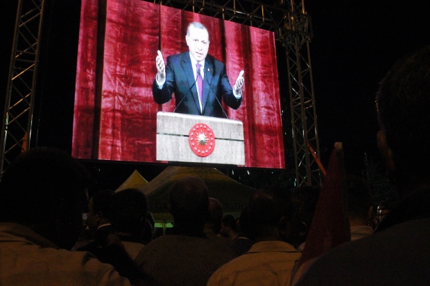 Gaziantep Demokrasi Meydanı'nda gerçekleştirilen darbeye tepki nöbetinde on binlerce kişi Cumhurbaşkanı Recep Tayyip Erdoğan'ı canlı izledi.
