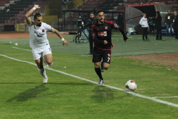 114. dakikada Gaziantepspor'dan Oğuzhan Türk, rakibine yaptığı faul sonrası hakem tarafından kırmızı kartla cezalandırıldı.