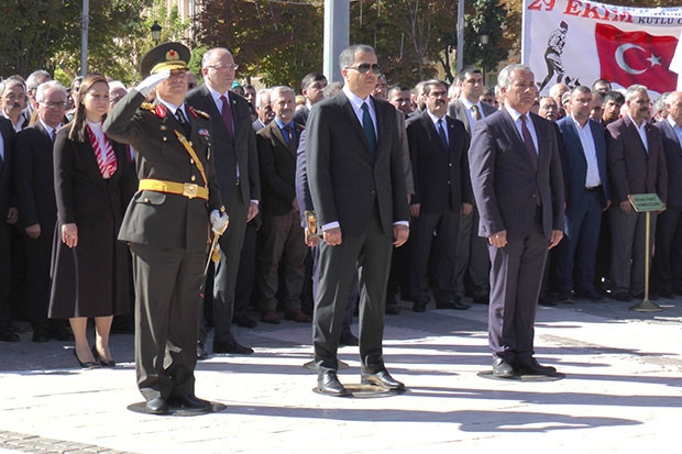 İstiklal Marşı’nın okunmasıyla başlayan törende Vali Yerlikaya, Büyükşehir Belediye Başkan vekili Latif Karadağ ve Tuğgeneral Şefik Atak meydanda bulunan Atatürk Anıtı’na çelenk bıraktı.