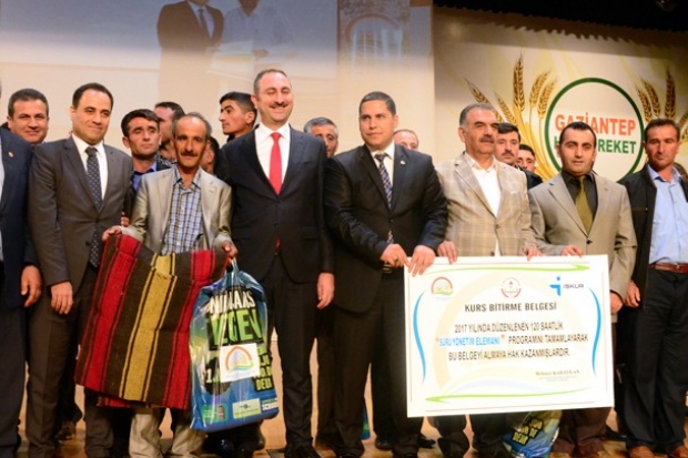 Gaziantep'te, Gıda Tarım ve Hayvancılık İl Müdürlüğü tarafından Kırsal Yatırımların Desteklenmesi Programı kapsamında 2017 yılı basınçlı sulama hibe başvurusu kabul edilen 407 yatırımcıya, 7 milyon 620 bin lira tutarında hibe sağlanması amacıyla imza töreni düzenlendi. Şehitkamil Kongre ve Kültür Merkezi'nde düzenlenen törene; Vali Ali Yerlikaya, Ak Parti Genel Sekreteri ve Gaziantep Milletvekili Abdulhamit Gül, Gıda Tarım ve Hayvancılık Bakanlığı Tarım Reformu Genel Müdür Vekili Muhammed Adak, Gıda Tarım ve Hayvancılık İl Müdürü Mehmet Karayılan ve çiftçilerin katıldı.