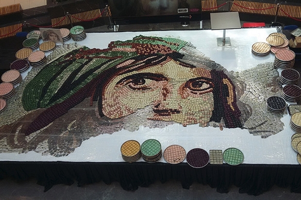 Rekor denemesinin, '40 Kattaki Tarih' adıyla Gaziantep’in olmazsa olmazlarından baklava ve 'Çingene Kızı Mozaiğini' bir araya getirme fikriyle ortaya çıktığı belirtildi. 37,5 metrekare boyutundaki mozaiğin 14 ana rengini oluşturan içi fıstık dolu her biri yaklaşık 7 santimlik 6 bin 160 adet gerçek baklava dilimi üretildi.