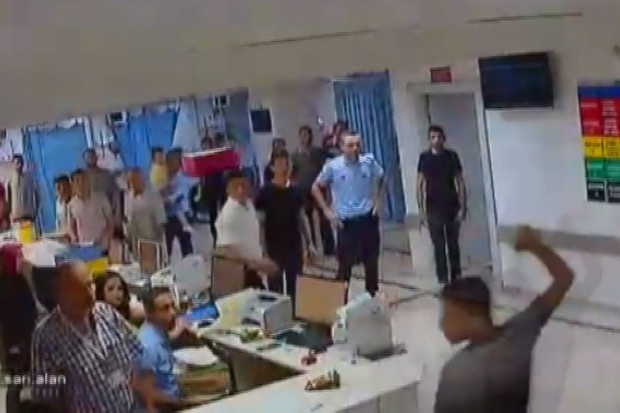 Tartışmanın büyümesiyle yaşanan arbedede guruptan bazı kişiler bıçaklarla doktor ve hastane güvenlikçilerine saldırdı. Bu sırada cezaevinde görevli olan ve görev için hastanede bulunan jandarma ekipleri saldırganlara biber gazı sıkarak dağıttı. Bu esnada bir özel güvenlik görevlisi koluna aldığı bıçak darbesiyle yaralandı. Tüm bu yaşananlar hastanenin güvenlik kamerasına saniye saniye yansıdı.