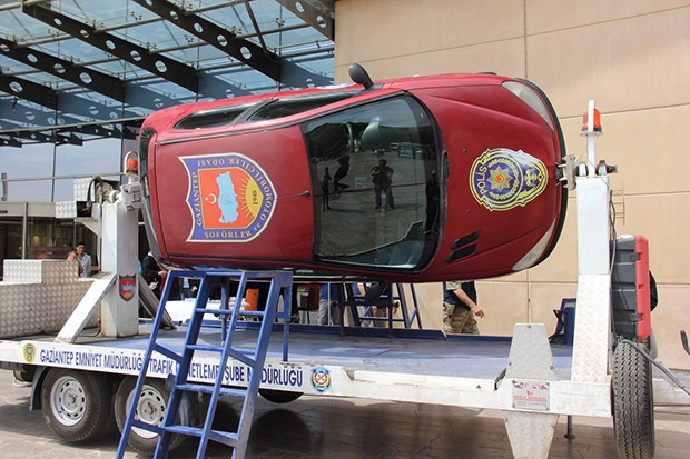 Gaziantep’te ‘Trafik Haftası’ dolayısıyla, smilasyon otomobile takla attırılarak yapılan tatbikatta emniyet kemerinin önemine dikkat çekildi. Araç içindeki v atandaşların emniyet kemeri takılı olduğu için burunları bile kanamadan kurtuldukları anlar ise gerçeği aratmadı.