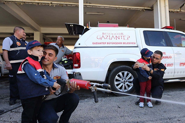 Büyükşehir Belediyesi İtfaiye Daire Başkanlığı’nda düzenlenen yangın söndürme eğitimine Gaziantep Büyükşehir Belediyesi Engelliler Daire Başkanı Yusuf Çelebi, değişik engelli gruplarından onlarca vatandaş ve down sendromlu çocuklar katıldı. Katılımcı engelli gruplarına seminer salonunda Gaziantep İtfaiyesi Eğitim ve Denetim Şube Müdürlüğü Eğitim Amiri Fuat Yılmaz tarafından yangın itfası konusunda bilgi verildi. İşitme engelli vatandaşların da katıldığı eğitimde işaret dili ile anlatım yapıldı. Katılımcı engelli gruplarına Gaziantep İtfaiye Daire Başkanlığı tarafından çekilen kısa film izletildi. Teorik yangın sördürme eğitiminin ardından katılımcılara uygulamalı olarak yangın tatbikatı yaptırıldı.