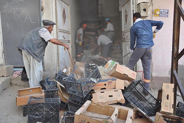 Namık Kemal Mahallesi'nde, yalnız yaşayan 78 yaşındaki Hüseyin K.'nın altı depo olarak kullanılan 2 katlı müstakil evinden kötü kokular yayılmasından rahatsız olan mahalle sakinleri durumu belediye ekiplerine bildirdi.