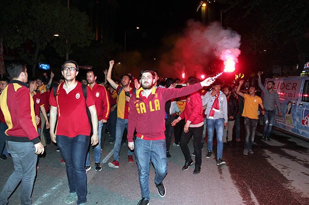 Atatürk Bulvarı üzerinde bir araya gelen sarı-kırmızılı takımın taraftarları, ellerinde meşalelerle Beşiktaş’ı yenerek 3 puan almanın sevincini yaşadı. Takımları lehine tezahürat ve slogan atan taraftarlar, ligin bitimine 3 hafta kala şampiyonluk şarkıları söyledi.