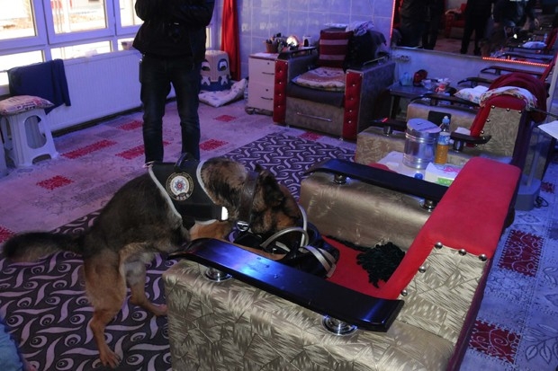 Narkotik köpeği ‘Alex’ ve bomba arama köpeği ‘Timsah’ın da katıldığı operasyonda genelevdeki odalarda uyuşturucu ve patlayıcı araması da yapıldı.