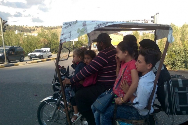 Gaziantep'in Oğuzeli ilçesinden Gaziantep'in Çıksorut Mahallesi istikametine giden motosikletin üzerindeki 7 kişi ile birlikte çıktığı yolculuk görenleri korkuttu. Karavana gibi kullanılan motosikletin üstüne yağmur ve güneş için branda gerilmesi dikkat çekerken, daha fazla yolcu alınabilmesi için motosikletin arka tarafına ise ek yapıldığı görüldü. Perilikaya kavşağında görüntülenen motosiklette, 7 kişinin yanı sıra valiz ve çantaların da yer alması dikkat çekti.