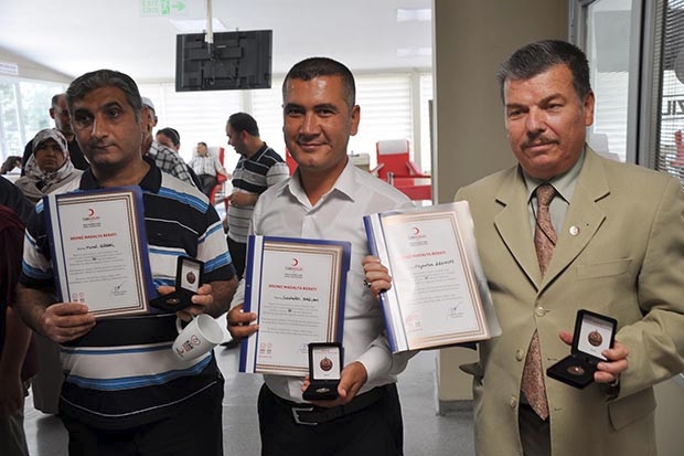 Kan bağışında bulunan donörler sabah saatlerinden itibaren merkeze gelerek kendileri için hazırlanan altın, gümüş ve bronz madalyalar ile beratlarını aldı. 45'in üzerinde bağış yapanlara ise özel plaketleri verildi.