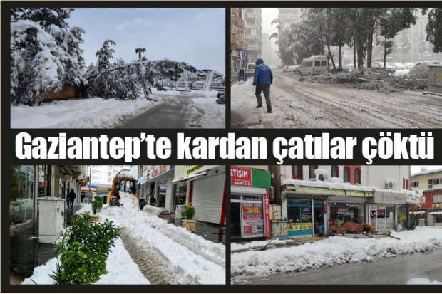Gaziantep’in İslahiye ilçesinde dün başlayan ve halen devam eden kar sebebi ile bir çok ağaç devrildi, ilçe merkezinde ki iş yerlerinin çatısı çöktü. Kar kalınlığının yarım metreyi geçtiği ilçe merkezinde yollar kapandı, birçok köy yolunun kapalı olmasından dolayı irtibat sağlanamıyor. Araçlar yollarda kaldı. Acil sağlık ekipleri, vakalara iş makinelerinin öncülüğünde ilerleyebildi.