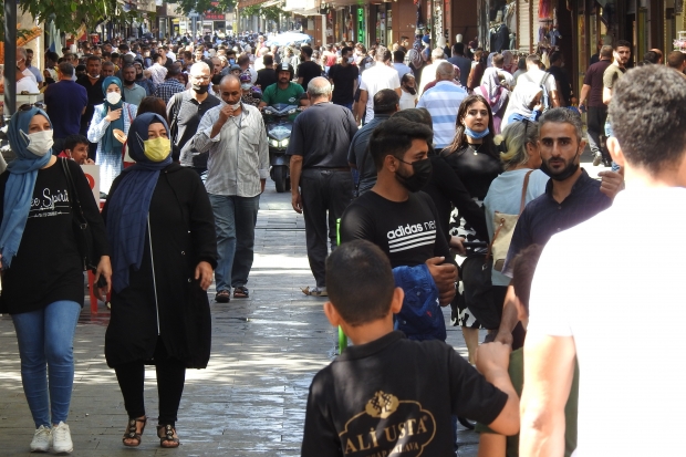 Vaka sayısının artışa geçtiği Gaziantep’te sokak ve caddelerdeki görüntüler ürkütüyor. Sağlık Bakanı Fahrettin Koca’nın sosyal medya üzerinden dile getirdiği son 1 haftada vaka sayısının artışa geçtiği şehirlerden biri olan Gaziantep’te çarşı ve pazarlardaki kalabalıklar korkutuyor. Sosyal mesafenin hiçe sayıldığı şehirde, vatandaşların büyük çoğunluğu maske zorunluluğuna rağmen maske takmazken kimi vatandaşlar ise maskeyi çene altı ile kollarına taktı.