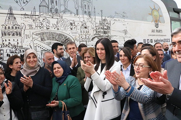 AK Parti Çevre, Şehir ve Kültürden Sorumlu Genel Başkan Yardımcısı Çiğdem Karaaslan, Gaziantep 15 Temmuz Demokrasi Meydanı'nda konuşlanan "Şehrim 2023" projesi otobüsü önünde vatandaşlar tarafından coşkuyla karşılandı.