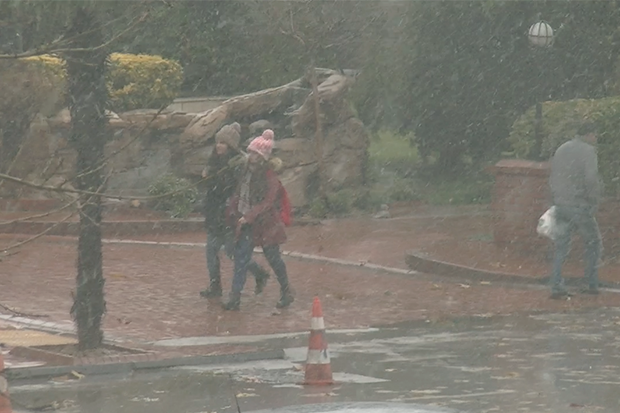 Kent merkezinde hayatı olumsuz etkileyen şiddetli rüzgar ve kar yağışı nedeniyle sürücüler buzlanmaya karşı uyarılırken, yayalar ise zor anlar yaşadı.