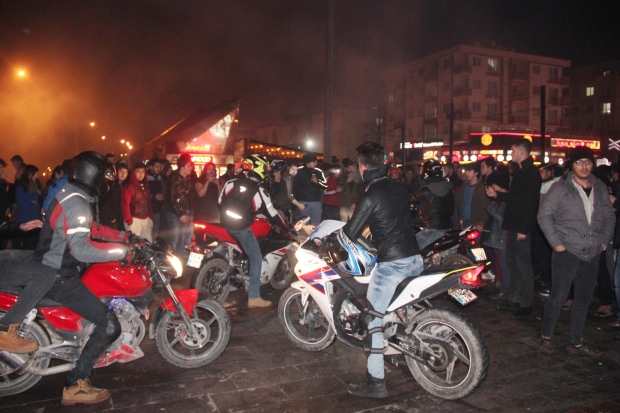 Suriyelilerin motosikletli kutlaması diğer vatandaşlar tarafından ise cep telefonları il kaydedildi.