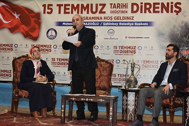 15 Temmuz günü Türk Halkı’nın FETÖ’ne karşı göstermiş olduğu şanlı direniş Gaziantep Valiliği, Şahinbey Belediyesi, KAGEM ve Türkiye Diyanet Vakfı’nın birliktedüzenlediği “15 Temmuz Tarihi Değiştiren Direniş” isimli konferansla, 19 farklı okuldan katılan öğrencilere anlatıldı. Konferansa Prof. Dr. Nurullah Genç ve Umut Mürare konuşmacı olarak katıldı. Şahinbey Belediyesi’nin Kültür Merkezi’nde yapılan konferansa Şahinbey İlçe Müftüsü Musa İmamoğlu, Şahinbey Belediye Başkan Yardımcılar, meclis üyeleri kurum müdürleri, Kadın Aile ve Gençlik Merkezi üyelerinin yanı sıra öğrenciler katıldı. Gaziantep İl Müftü Yardımcısı Hamza Bayram, Şahinbey Belediyesinde düzenlenen programda yaptığı konuşmada, 15 Temmuz şehitlerini anmak için böyle bir etkinlik düzenlediklerini belirtti. Binlerce yıldır yaşanılan bu topraklarda nice savaşların olduğunu anımsatan Bayram,"Bu süreçte nice yıkımlar yaşandı. Ancak her seferinde bu aziz millet, bunun üstesinden gelmesini bilmiştir. 15 Temmuz gecesi, ülkemizi, milletimizi, demokrasimizi, cumhuriyetimizi ve aydınlık yarınlarımızı yok etmek için vatan hainleri harekete geçmişlerdi" dedi.