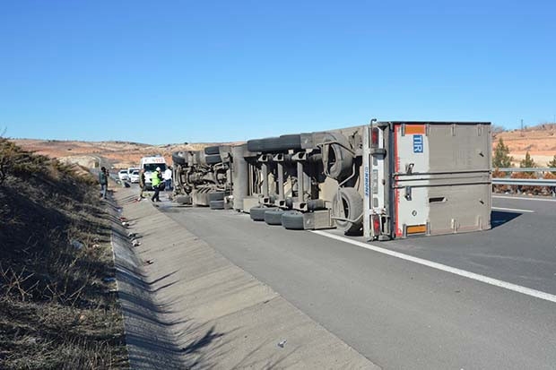 Şanlıurfa yönüne giden Abdulhalim Can yönetimindeki 33 RF 868 plakalı TIR, sürücüsünün direksiyon kontrolünü yitirmesiyle bariyerlere çarparak devrildi. Kazada, TIR'ın ön bölümündeki camın kırılmasıyla yola savrulan Rukiye Can yaşamını yitirirken, sürücü eşi Abdulhalim ile çocukları Osman ve Mahsun Can yaralandı.