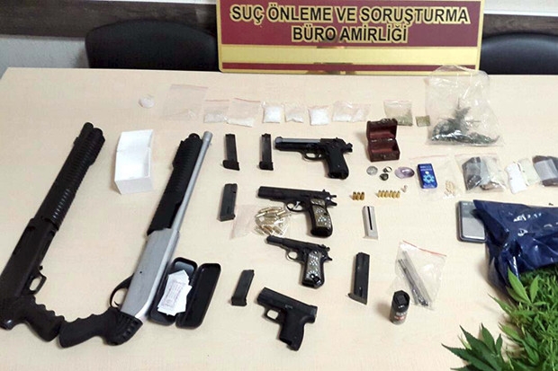 Gaziantep'te, çeşitli suçlardan aranan kişi 4 tabanca, 2 tüfek, uyuşturucu ve tarihi eserle gözaltına alındı.