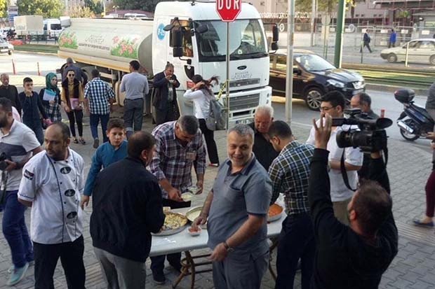 "Bugün yine maç var. Her maç günü olduğu gibi yine maça 6 saat kala yollar kapatıldı ve kimse iş yerimize gelemiyor. Biz her maç günü yemekleri dökmek zorunda kalıyorduk. Bugün de yemekleri dökmeyerek vatandaşlara dağıtarak tepkimizi göstermek istedik. Maliye nasıl ödenir? SSK nasıl ödenir? Kimse düşünmüyor, maçlar madem bu kadar tehlikeli, vatandaşın canını neden tehlikeye atıyorsunuz? İptal edin ligi herkes rahatlasın."