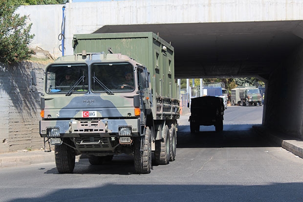 Fırat'ın doğusundaki terör örgütü PYD/PKK'ya yönelik yapılması planlanan operasyon öncesinde sınır hattına askeri yığınak devam ediyor. Gaziantep 5. Zirhli Tugay Komutanlığından çıkan ve içerisinde tankların yanı sıra mühimmat, makineli tüfekli pikap, zırhlı araç ve otobüslerin bulunduğu yaklaşık 150 araçlık konvoy, Şanlıurfa istikametine doğru hareket etti. Konvoydaki tank, zırhlı araç, mühimmat ve yaşam malzemelerinin Suriye'nin Telabyad şehri karşısındaki Akçakale, Aynel-Arap kenti karşısındaki Suruç ve Rasulayn kentine komşu olan Ceylanpınar ilçelerine götürüldüğü belirtildi.