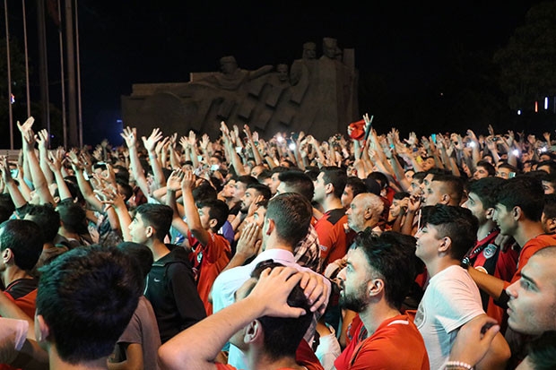 Ankara'da oynanan maça gidemeyen Gaziantepliler ise maçı geçen yıl olduğu gibi bu yıl da 15 Temmuz Demokrasi Meydanı'nda kurulan dev ekranda izledi. Maçın normal süresinde gelen 2 gol nedeniyle büyük hayal kırıklığı yaşayan taraftarlar, maç boyunca tezahüratlarla destekledikleri takımlarından bekledikleri golü izleyemedi. Maçın uzatma dakikalarında da gol olmayınca penaltı atışlarına giden maçta taraftar, büyük korku yaşadı. Geçen yıl ki gibi penaltı atışları ile hüsran yaşamak istemeyen taraftarlar, kimi zaman endişe kimi zaman ise umutla destekledikleri takımın penaltı atışlarından gaip ayrılması ile büyük sevinç yaşadı.